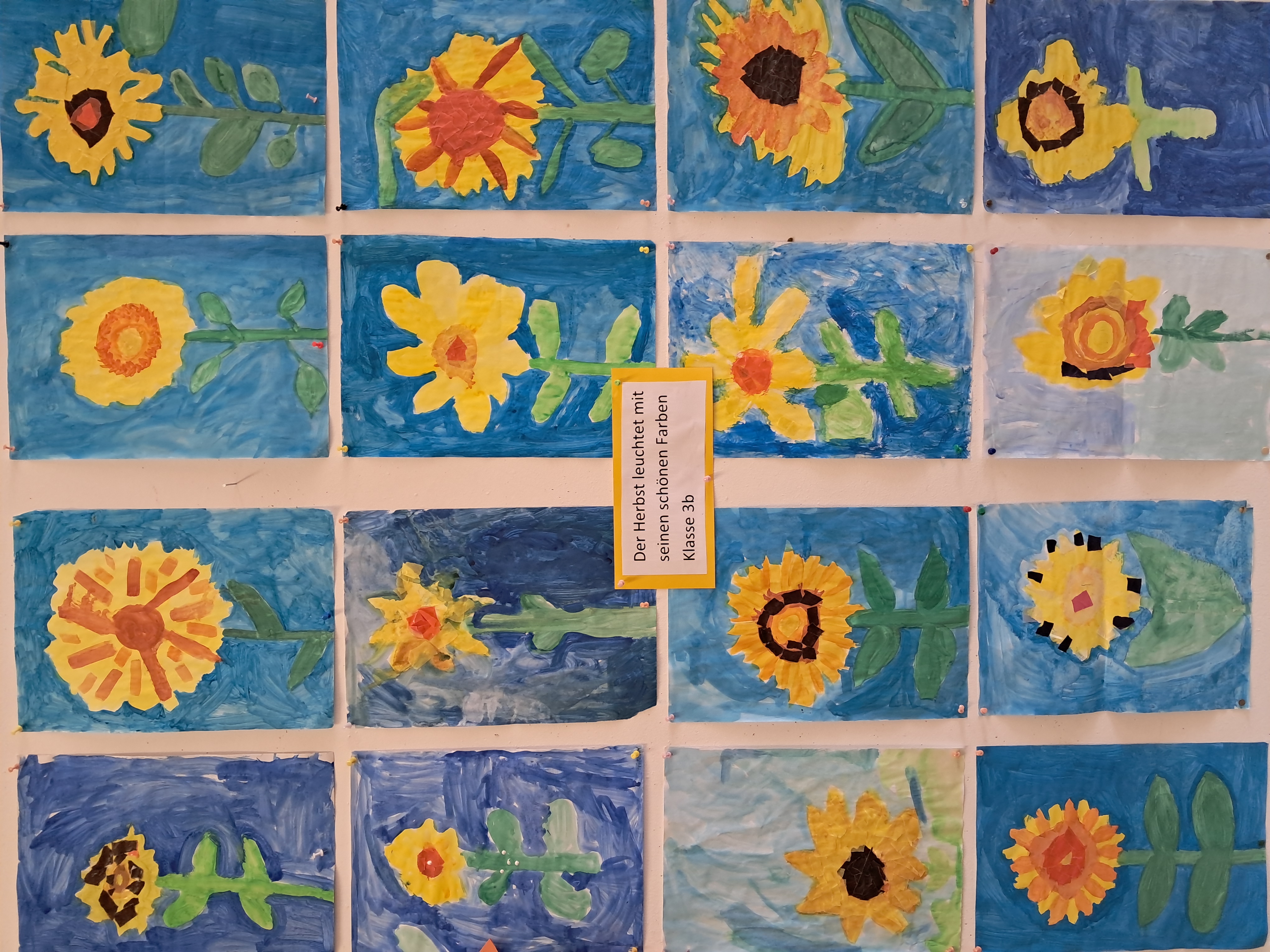 Die ersten Herbstgrüße aus dem Kunstunterricht schmücken die Flure und werden bald die Eltern zum Elternabend willkommen heißen.